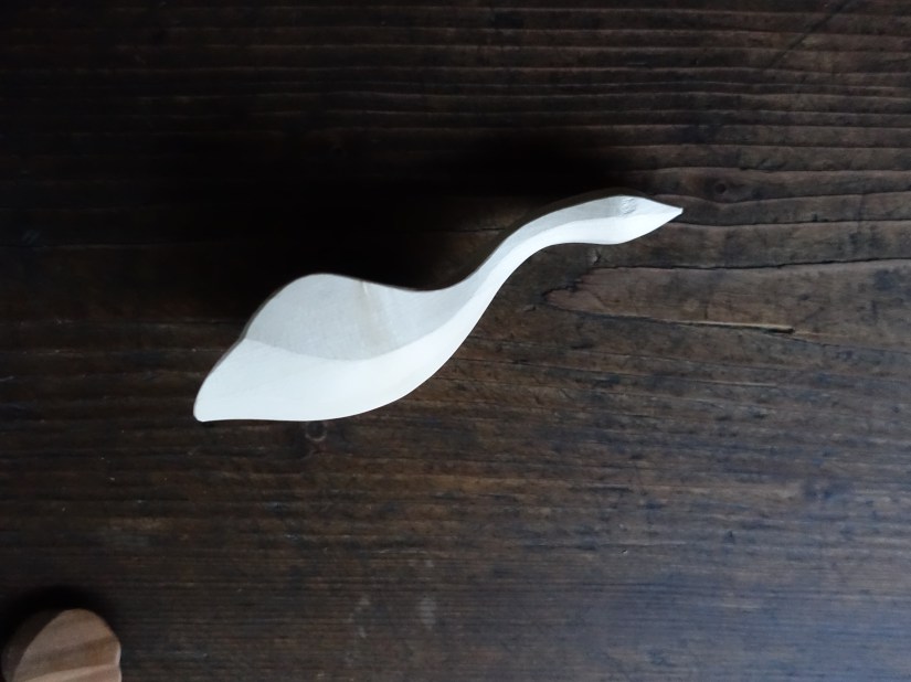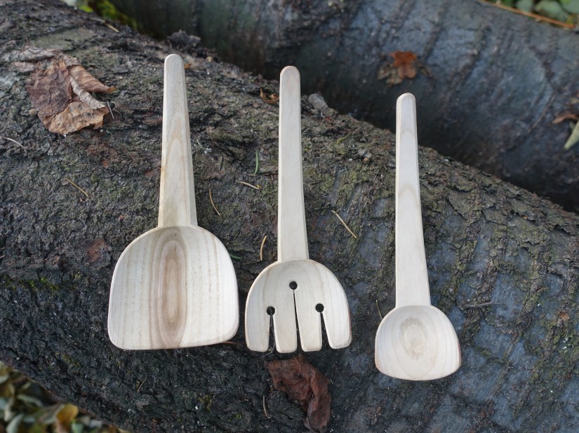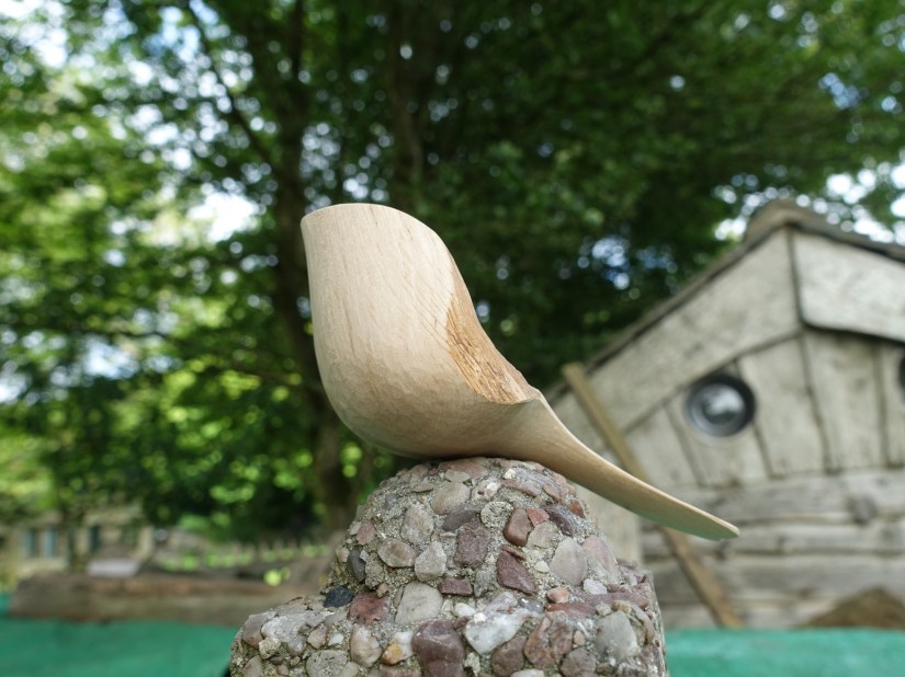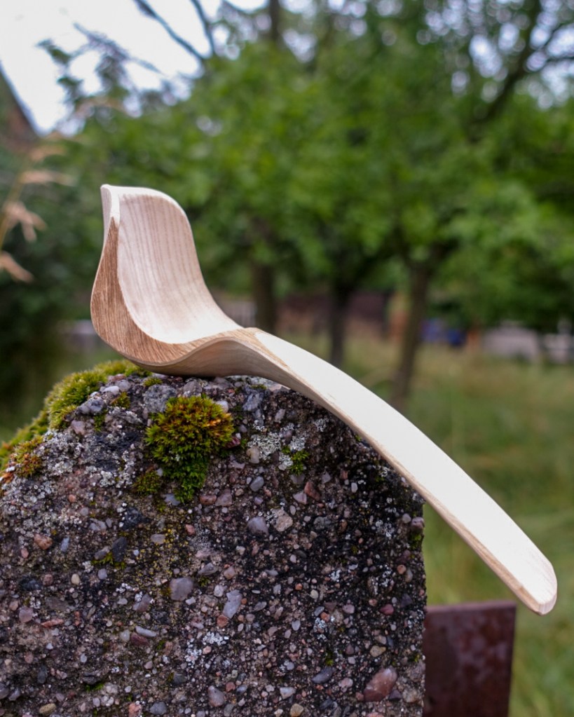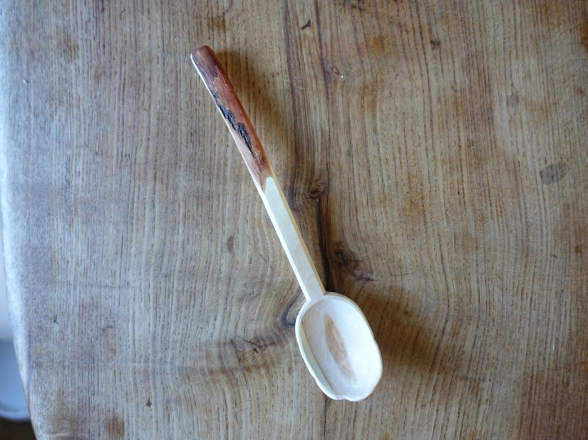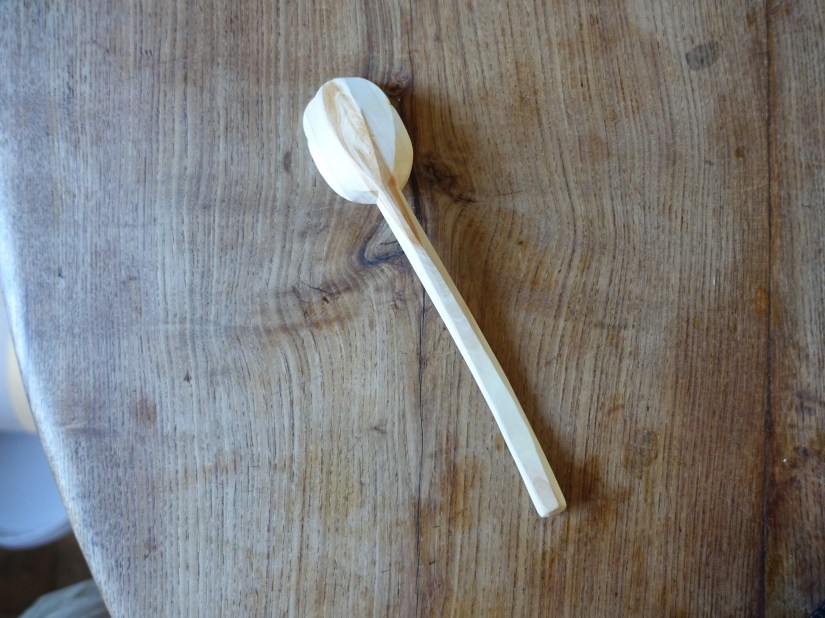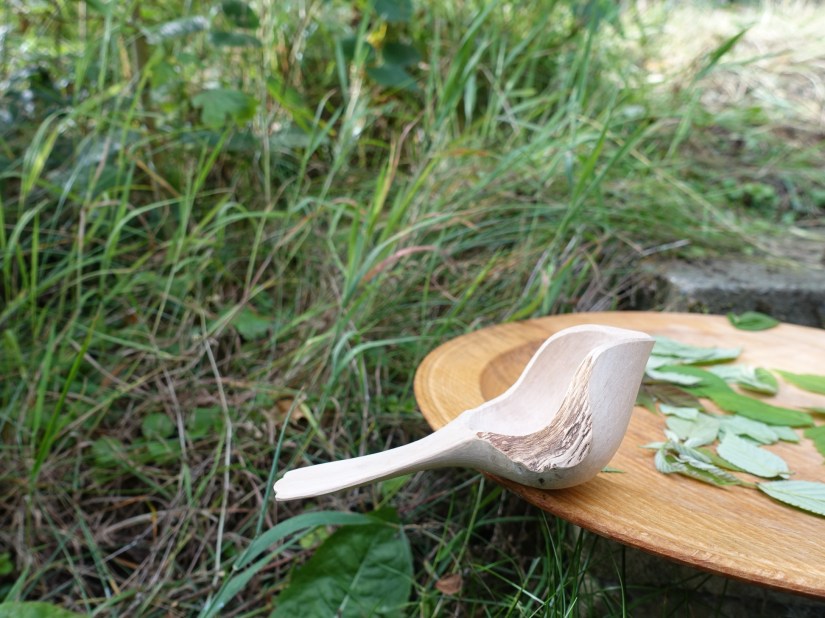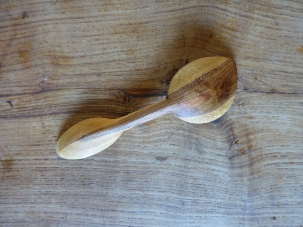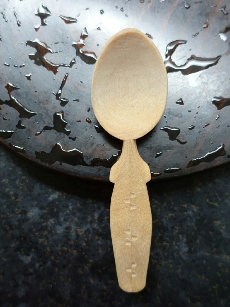 Serving spoon with chipcarved rosettee and knife-finished leaf